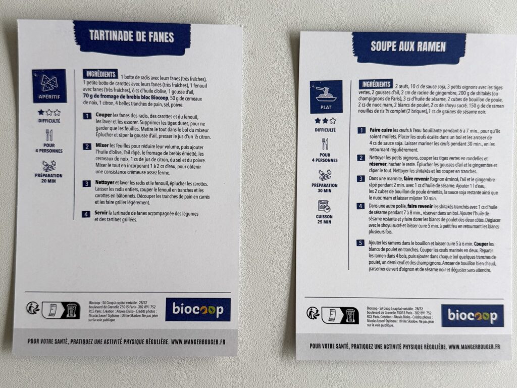bio coopのレシピカードはポストカードみたいな