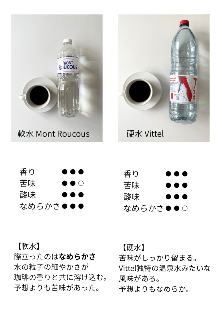 軟水、硬水それぞれ美味しい味わいでした‼︎