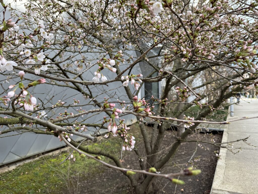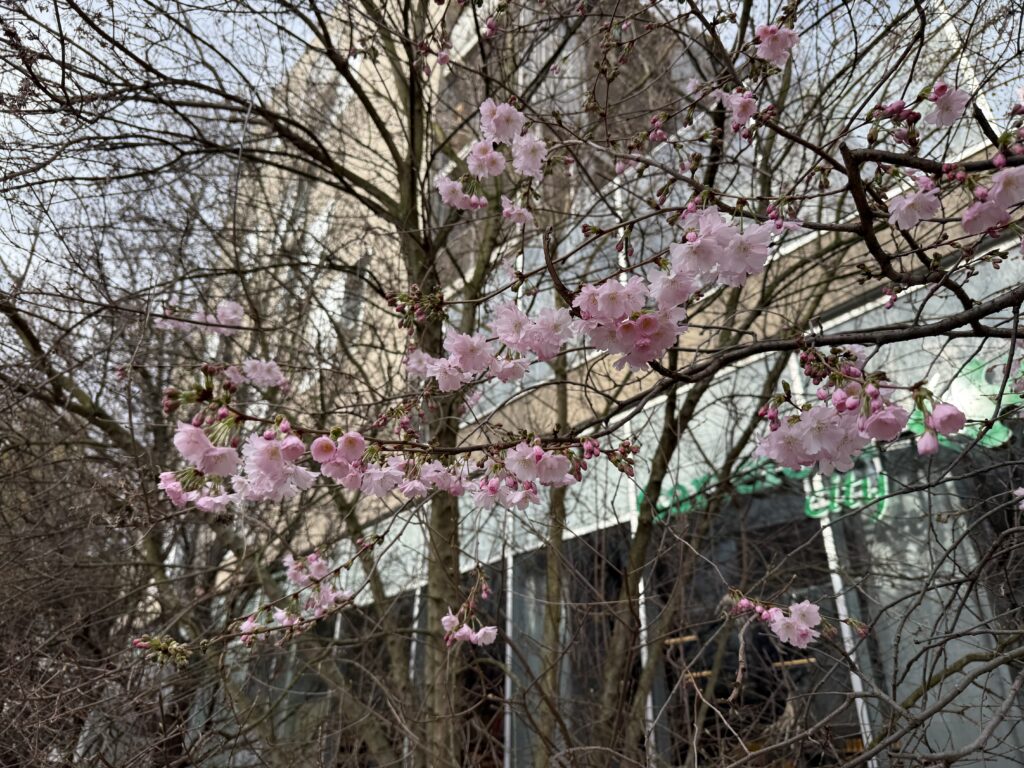 桜のつぼみが色づいて一部は咲いていました‼︎