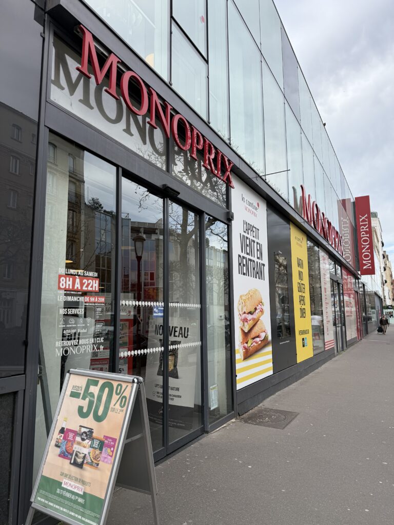 パリで店舗数が多いスーパー写真左:MONOPRX で