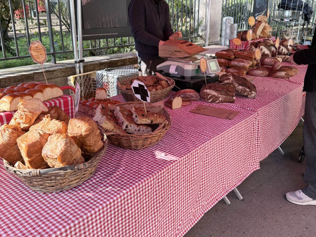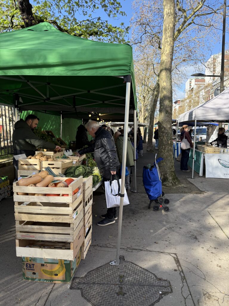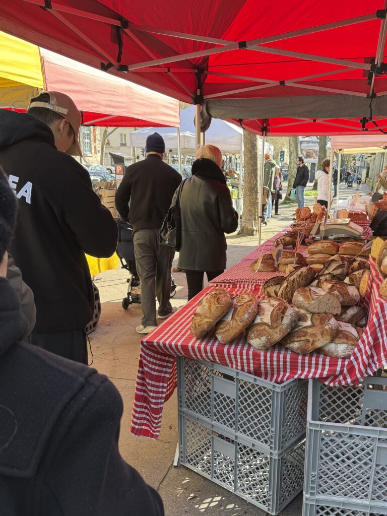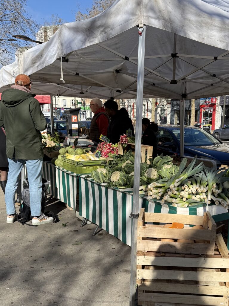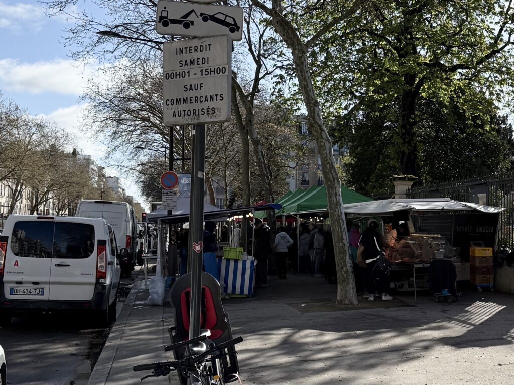 モノプリを後にして、ペット用品店へ歩き出すと…車道の反対歩道にテントが見えました。土曜日、テントと荷台車、人が集まる、といえば?….。横断歩道を渡るとやはり「マルシェ」でした‼︎