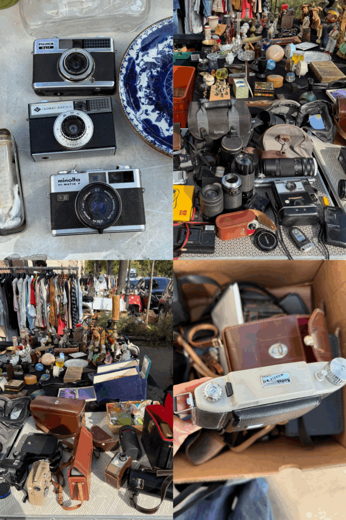 クラッシックカメラもブロカントで見かけます。使えるかは⁇コレクションやディスプレイに使うのかな⁇