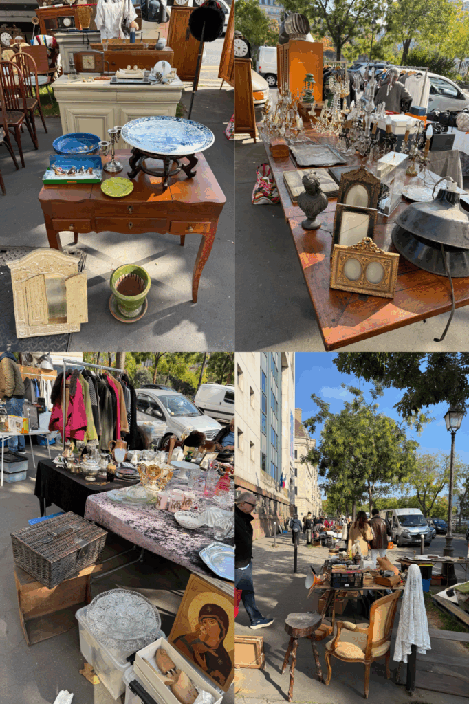 ブルトン通りは、サンマルタン運河沿いに並行した通りになります。蚤の市のブースからは車道で運河は見えないですが、道を渡り散歩するのもいいですね…とおすすめしながら私自身、ブロカントに夢中で運河を眺めようとはならなかった(๑>◡<๑)